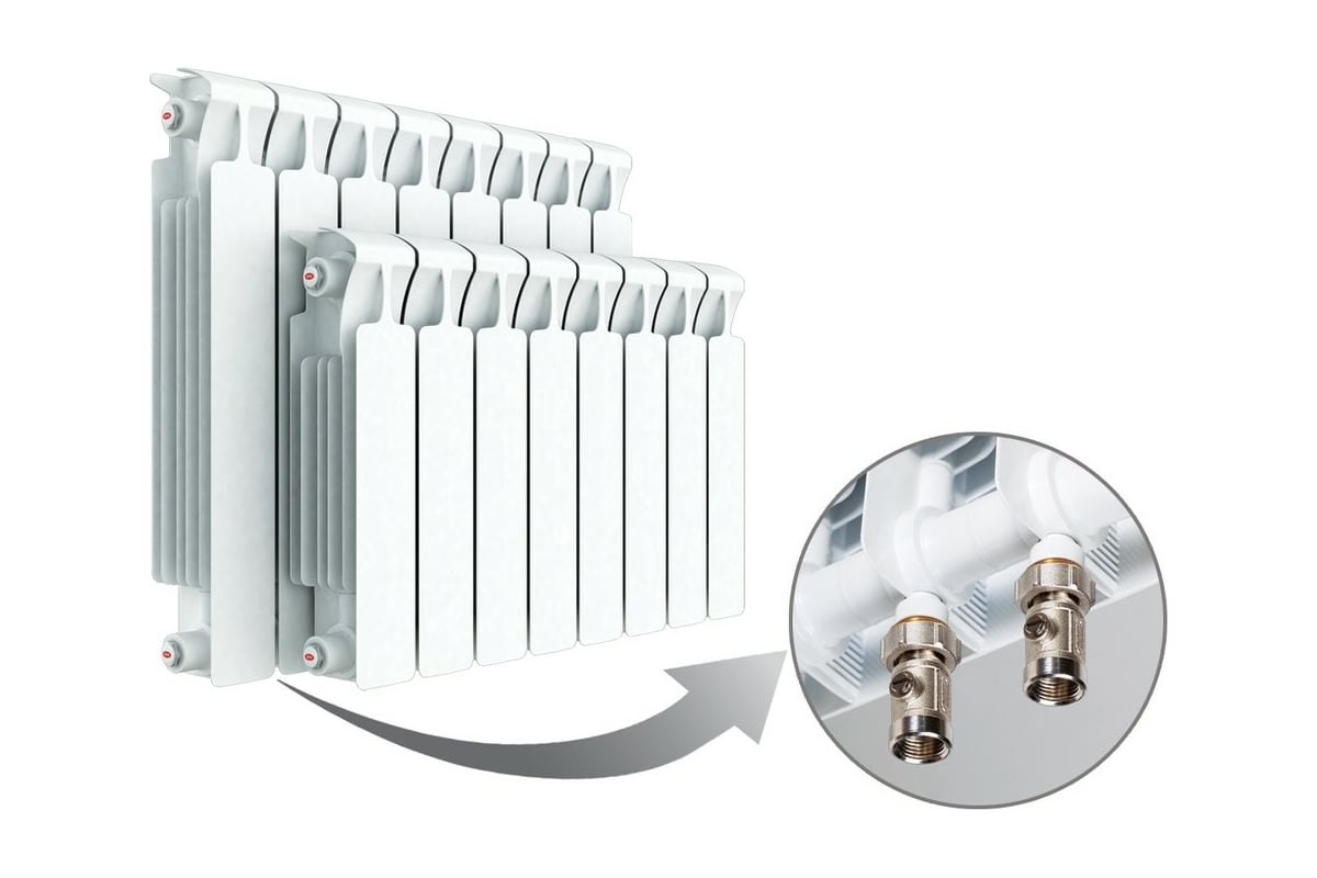 - Нижнее подключение к системе отопления;