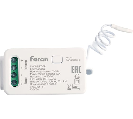 LD201 Контроллер для управления осветительным оборудованием на 1 канал, радиочастотный, с напряжением DC12V-48V мощностью до 500Вт для LED, максимальный ток 10А, цвет белый, IP20.