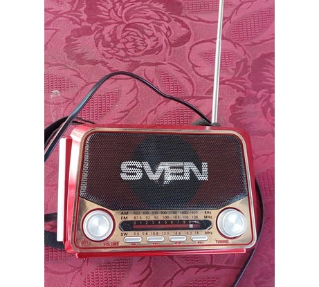 Радиоприёмник SVEN АС SRP-525 красный, 3 Вт, FM/AM/SW, USB, microSD, фонарь, встроенный аккумулятор SV-017163 подходит для прослушивания радио и музыки.