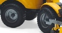 Маневренность Задние колеса точно следуют по колее передних колес благодаря шарнирному рулевому управлению. Можно без труда работать около клумб или деревьев. |