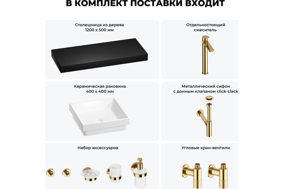 - 1 x cтолешница для раковины, арт. 162023000 (размер 120*50 см, цвет матовый черный)