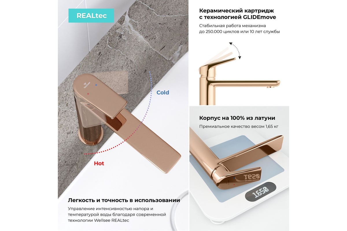 Надежный латунный смеситель с испанским картриджем 35 мм обеспечивает высокую точность управления напором и температурой воды, благодаря которому наслаждаться плавным скольжением ручки и мягким ходом смесителя можно более 10 лет. Регулируемый аэратор Neoperl с технологией AIRflow² позволяет скорректировать направление потока, уменьшает разбрызгивание и приглушает шум воды.