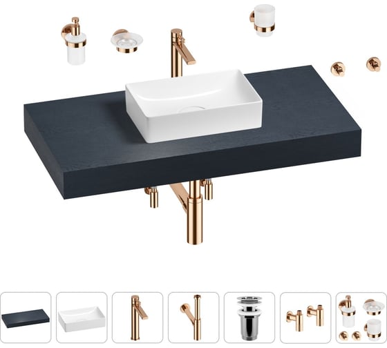 Раковина Wellsee 42 см со столешницей 100 смPure BY201010819 в наборе 10 в 1 201010819