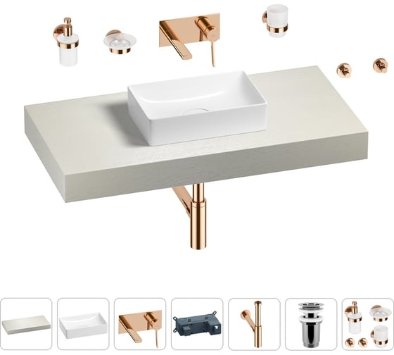 Раковина Wellsee 42 см со столешницей 100 смPure BY201010814 в наборе 9 в 1 201010814
