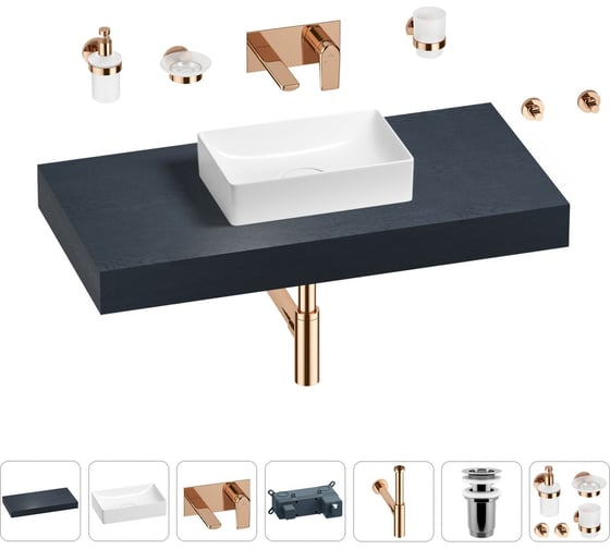 Раковина Wellsee 42 см со столешницей 100 смPure BY201010824 в наборе 9 в 1 201010824