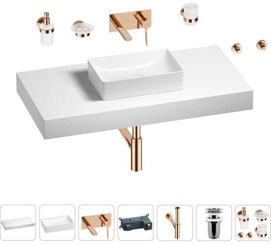 Раковина Wellsee 42 см со столешницей 100 смPure BY201010874 в наборе 9 в 1 201010874