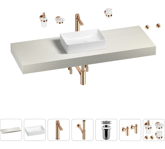 Раковина Wellsee 42 см со столешницей 140 смPure BY201010984 в наборе 10 в 1 201010984