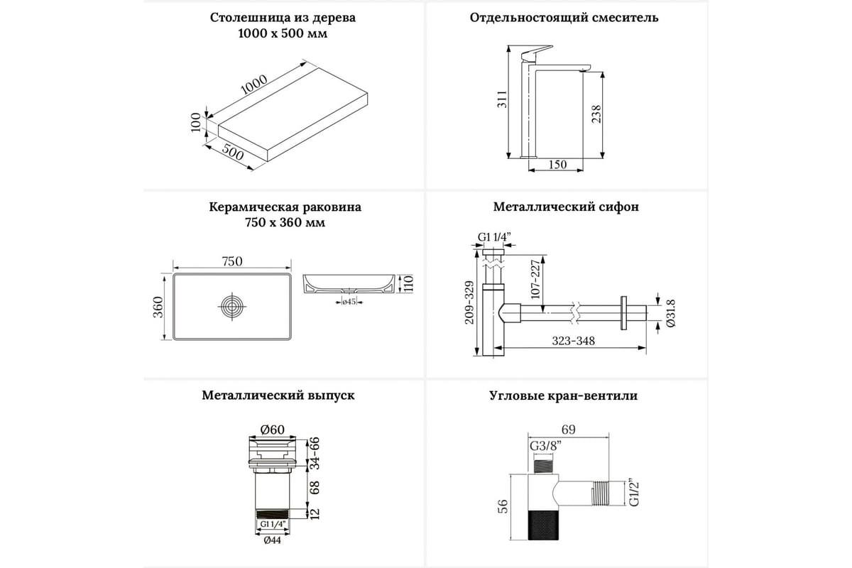 Технические характеристики Wellsee Pure BY 75 см со столешницей 100 см