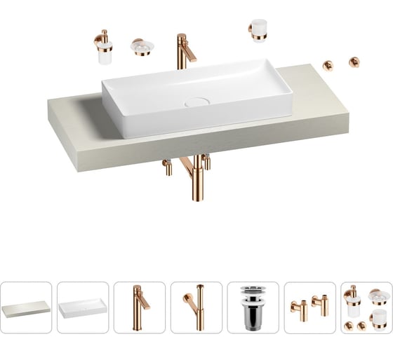 Раковина Wellsee 75 см со столешницей 120 смPure BY201011679 в наборе 10 в 1 201011679