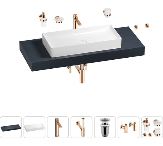 Раковина Wellsee 75 см со столешницей 120 смPure BY201011699 в наборе 10 в 1 201011699