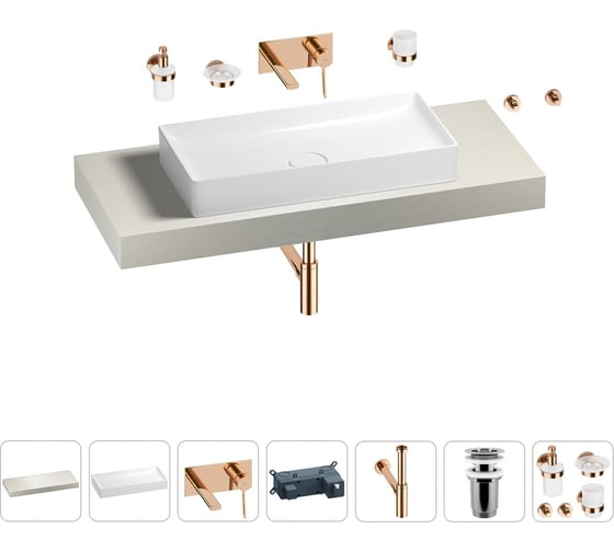 Раковина Wellsee 75 см со столешницей 120 смPure BY201011689 в наборе 9 в 1 201011689