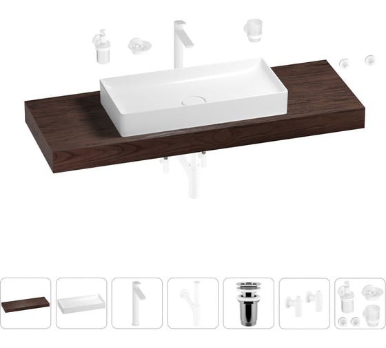 Раковина Wellsee 75 см со столешницей 140 смPure BY201011855 в наборе 10 в 1 201011855