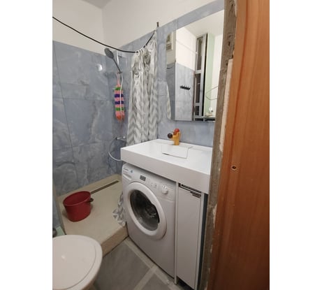 Отличная раковина, есть под неё шкаф .Стиралка влезает, каждый сантиметр задействован.