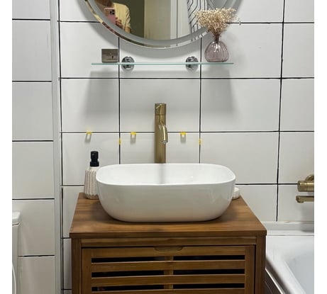Прекрасная раковина, смотрится качественно и эстетично, в эксплуатации удобная, оптимальная ширина и глубина, я очень довольна покупкой!