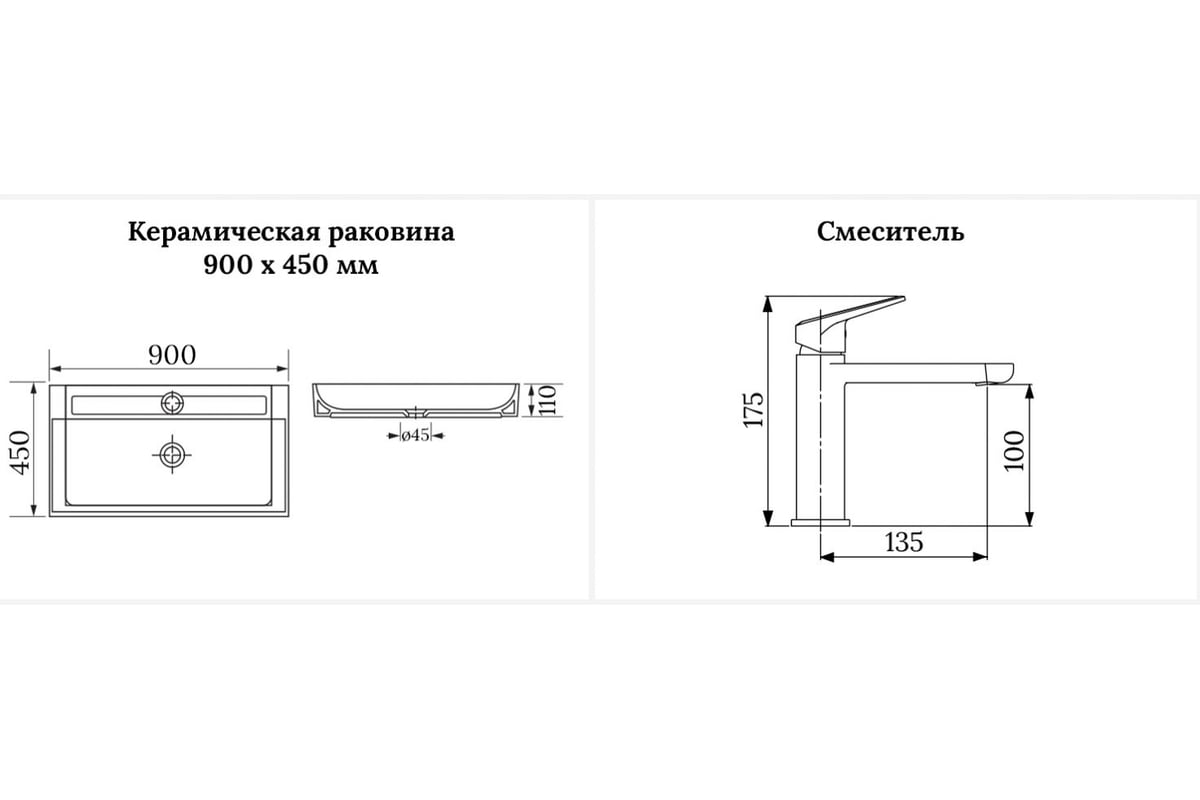 - 1 керамическая раковина с клапаном на отверстие слива, арт. 151601000 (размер 90х45 см, цвет глянцевый белый)