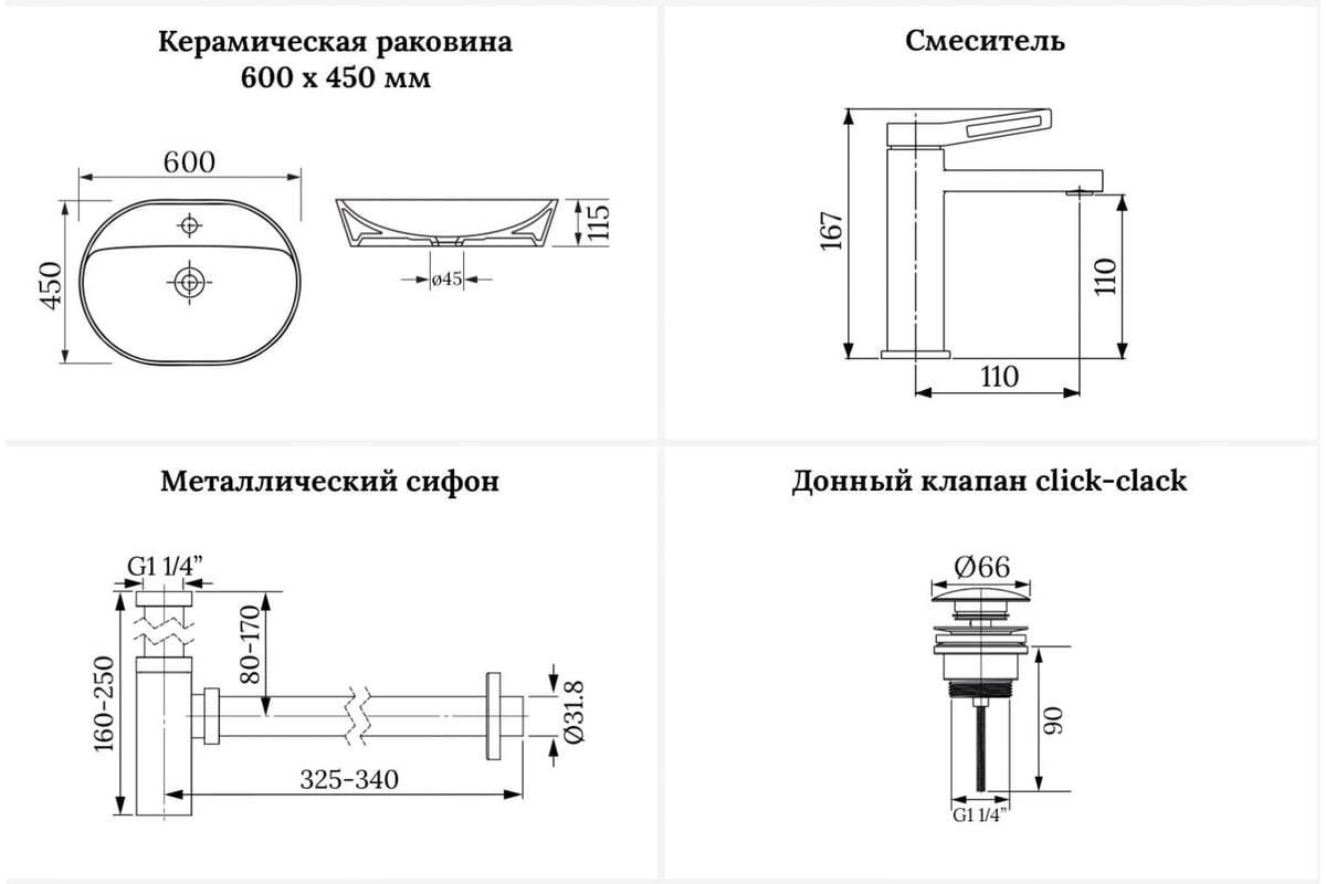 Раковина для ванной Wellsee Câlin в наборе 4 в 1 201001841