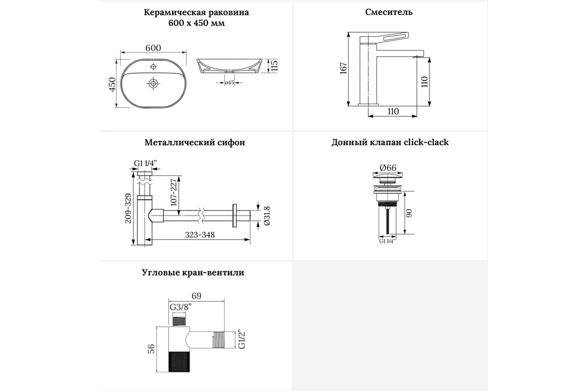 Раковина для ванной Wellsee Câlin в наборе 5 в 1 201003939