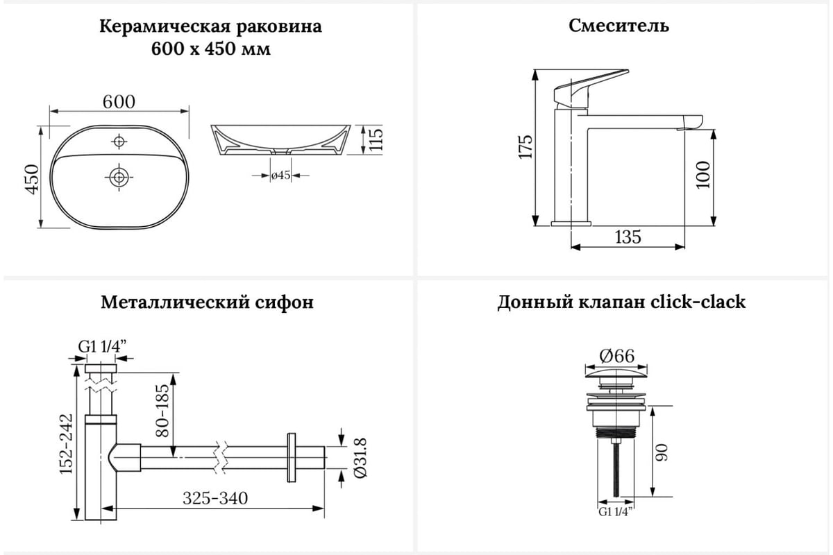 Раковина для ванной Wellsee Calin в наборе 4 в 1 201001828