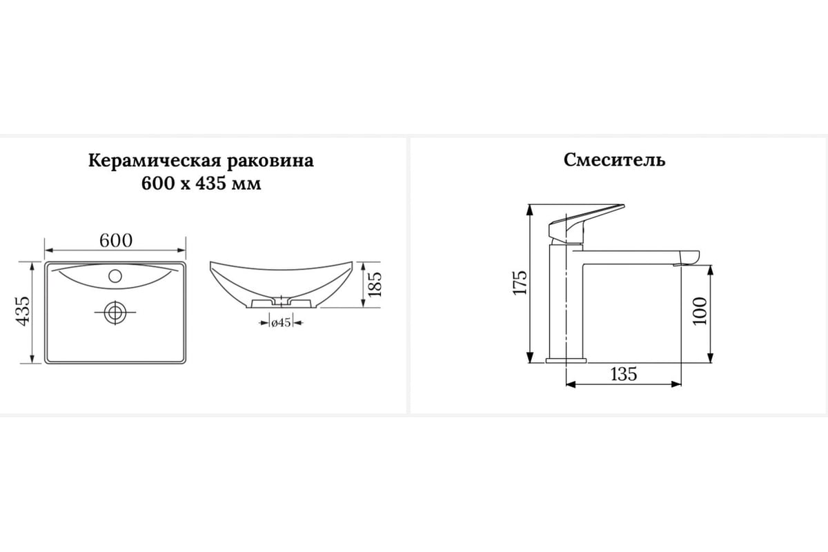 Ширина раковины:600 мм
