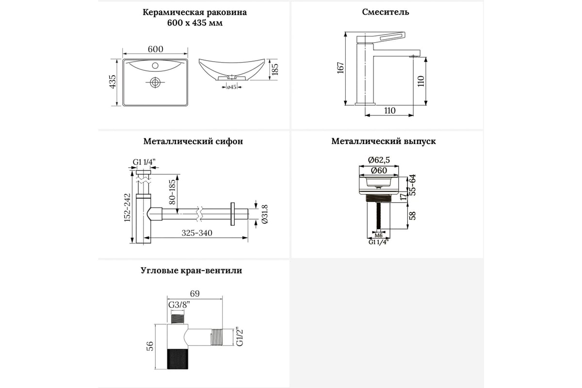 Раковина для ванной Wellsee Cerulean в наборе 9 в 1 201006756