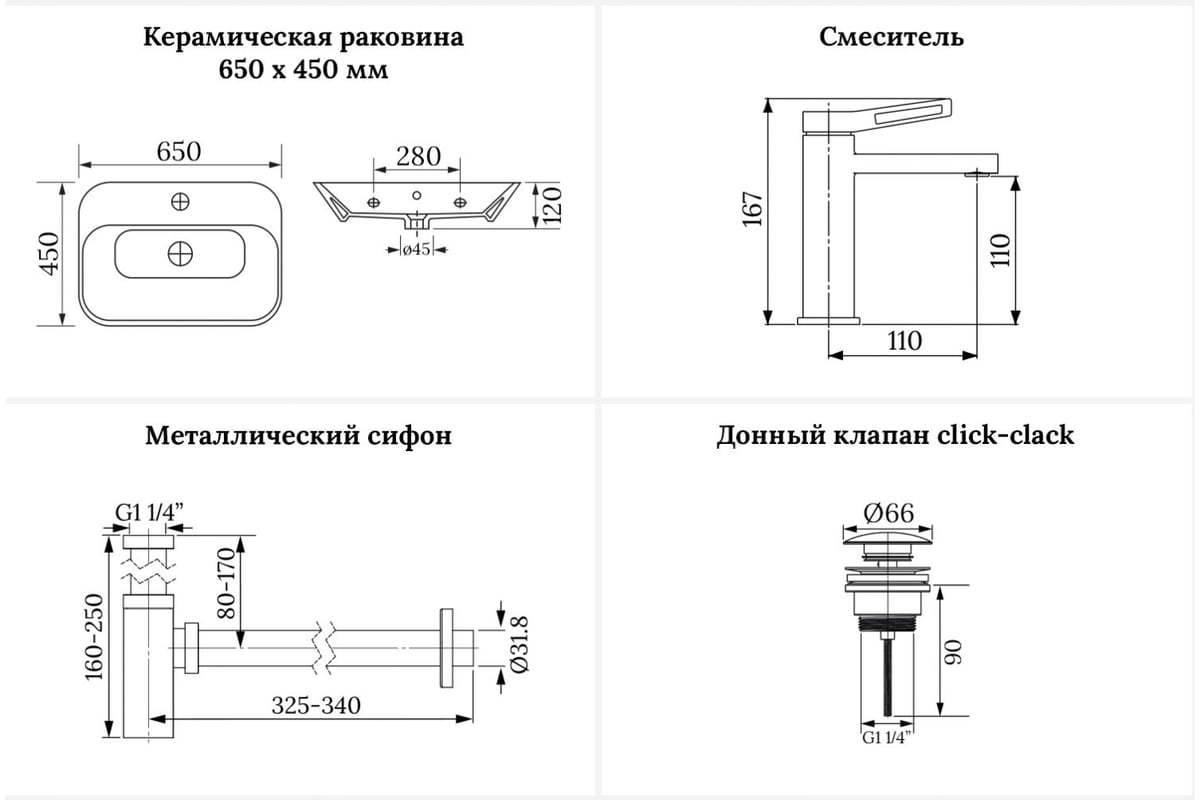 Раковина для ванной Wellsee Éclatant в наборе 4 в 1 201003716