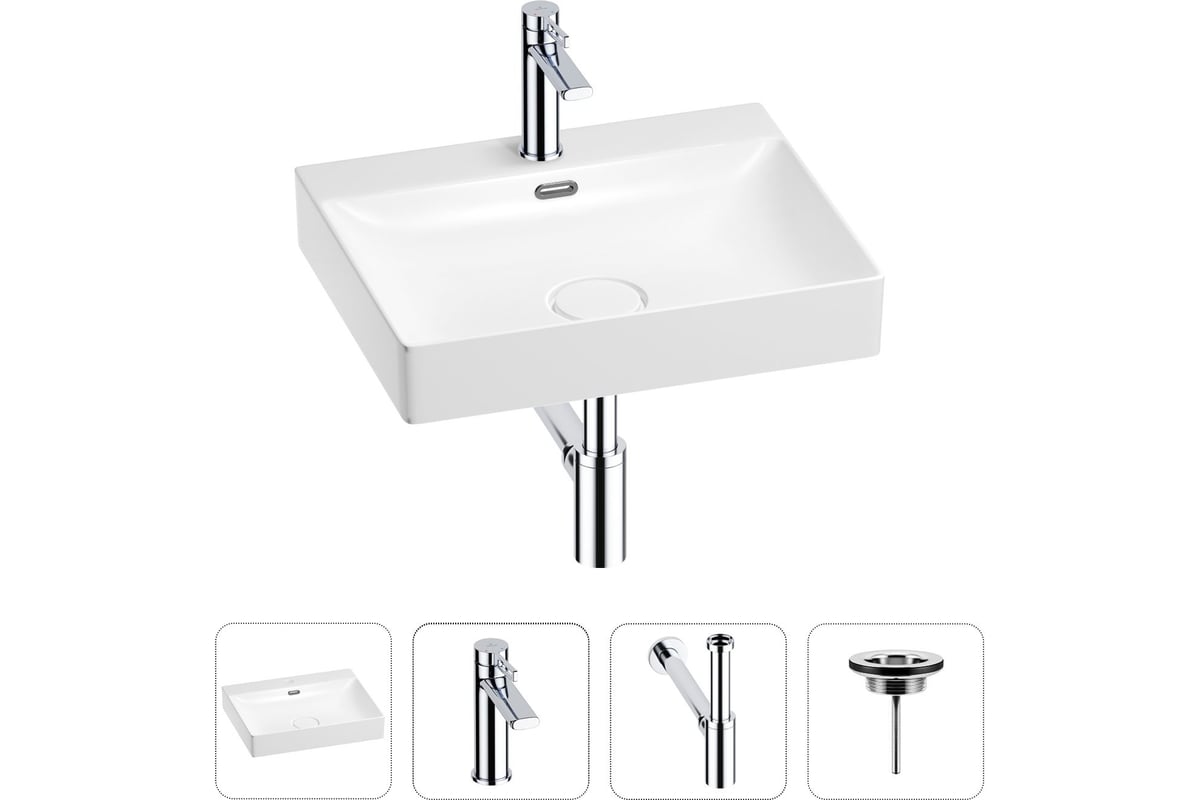 - 1 х раковина с клапаном на отверстие слива, арт. 151501000 (размер 55*45 см, цвет глянцевый белый)