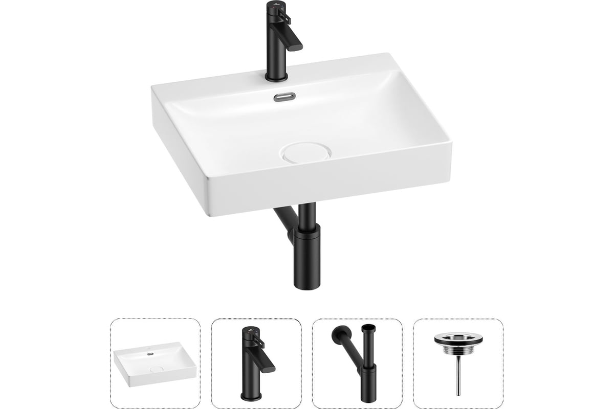 - 1 керамическая раковина с клапаном на отверстие слива, арт. 151501000 (размер 55х45 см, цвет глянцевый белый)