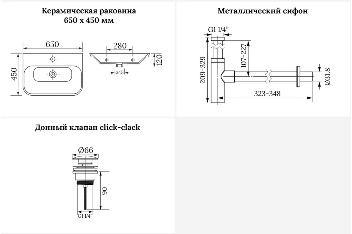 - 1 х керамическая раковина, арт. 151401000 (размер 65*45 см, цвет глянцевый белый)