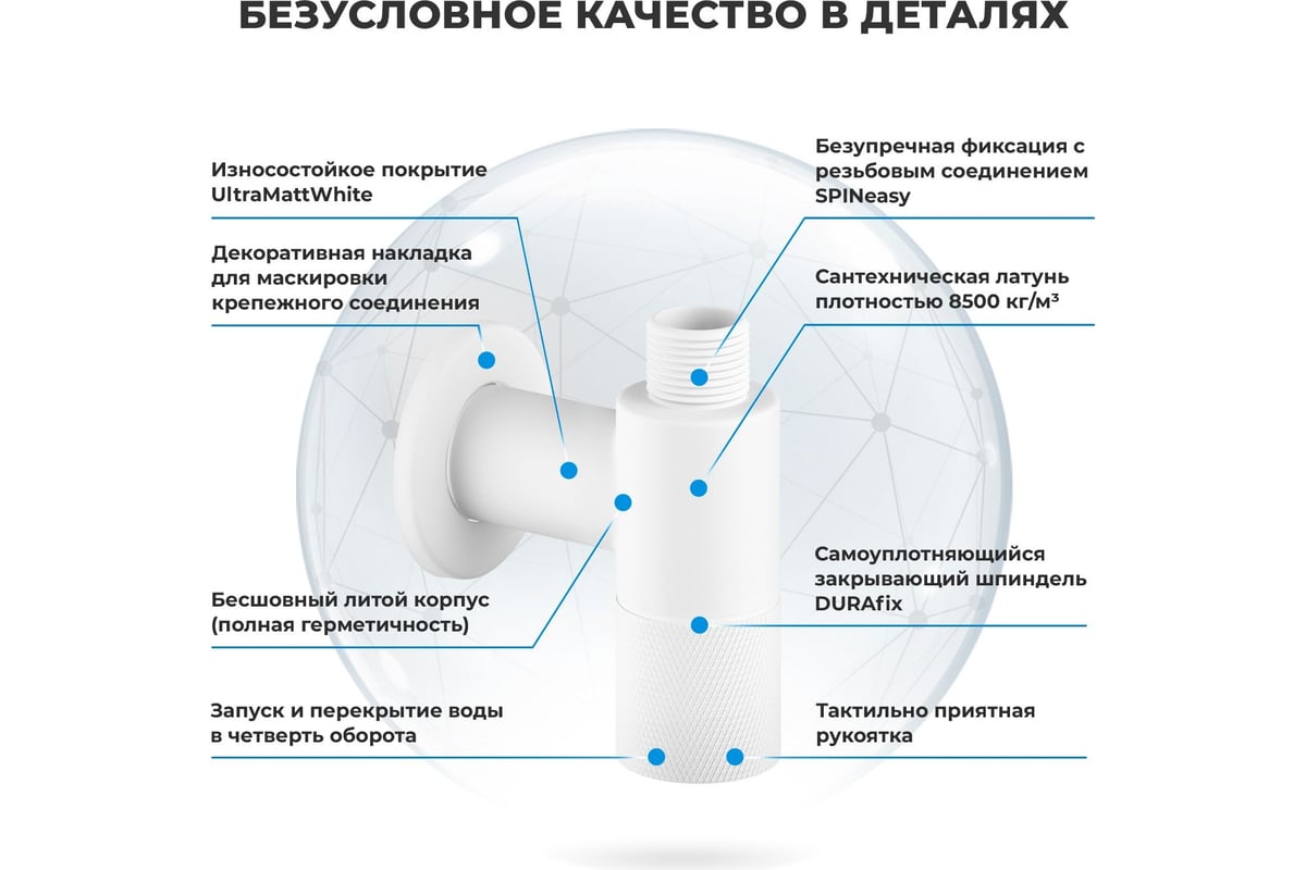 Надежный латунный смеситель с испанским картриджем 35 мм обеспечивает высокую точность управления напором и температурой воды, благодаря которому наслаждаться плавным скольжением ручки и мягким ходом смесителя можно более 10 лет. Регулируемый аэратор Neoperl с технологией AIRflow² позволяет скорректировать направление потока, уменьшает разбрызгивание и приглушает шум воды.