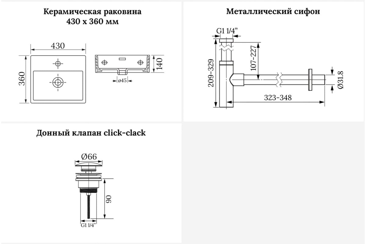Подвесная накладная или мебельная раковина Wellsee для ванной комнаты Graceful Pro в наборе 3 в 1 201001318