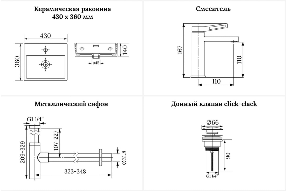Раковина для ванной Wellsee Graceful Pro в наборе 4в1 201002890