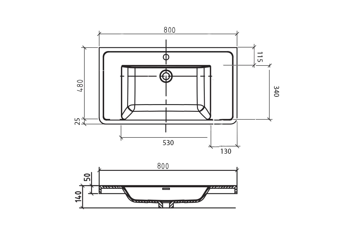 Форма раковины:прямоугольная