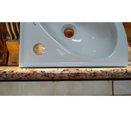 Часть фото сделано без вспышки - там белый цвет уходит в синеву - не обращайте внимание. В целом раковина выглядит отлично и компактно. Нет пустых мест на верхней плоскости, но и есть куда поставить принадлежности. Размер вполне достаточный - руки помещаются. Плюс - глубина и форма чаши - специально выбирал такие, чтобы было меньше брызг при использовании. Литьё качественное, угол 90 градусов есть. По плоскостям: одна практически в идеале, на второй есть точечные наплывы около 1мм в виде песчинок. Думаю подшлифовать вручную. Крепёж в комплекте не дешманский: шайбы эксцентрические для точного позиционирования, в шпильках есть гнездо под звездочку для удобства монтажа.