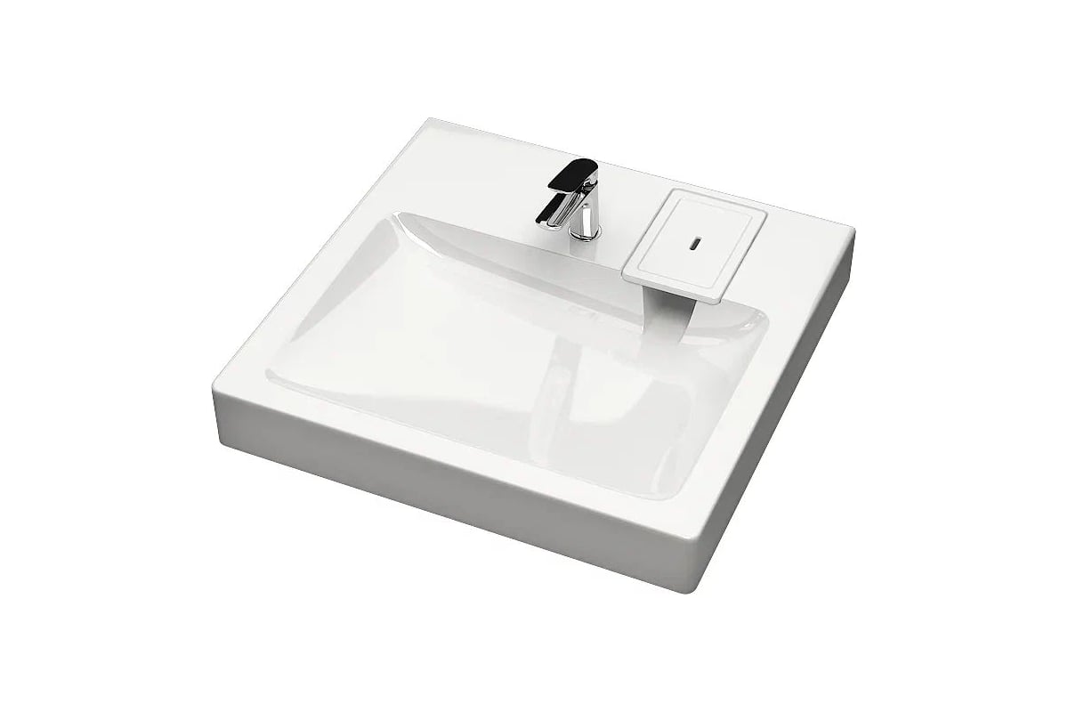 Раковина над стиральной машиной Bauedge BAU Hotel 60x60, литьевой мрамор в комплекте с кронштейнами и сифоном MY2001