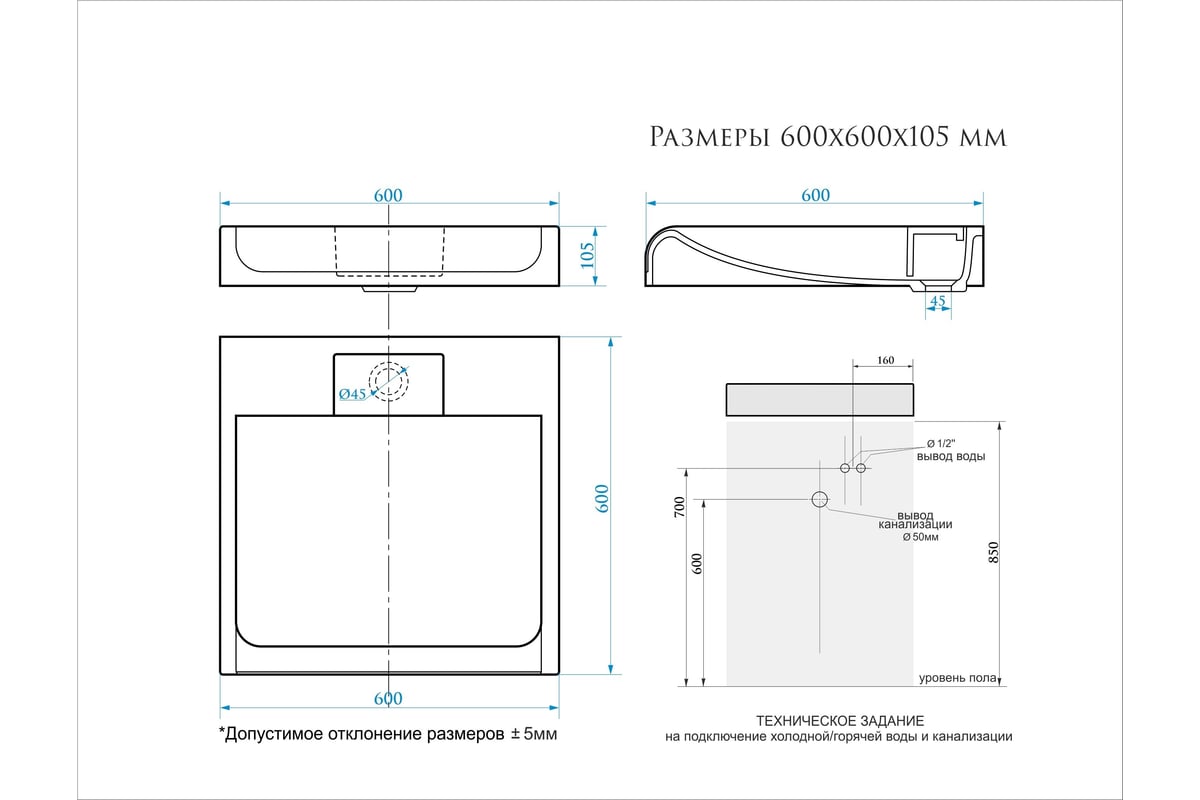Ширина раковины:600 мм