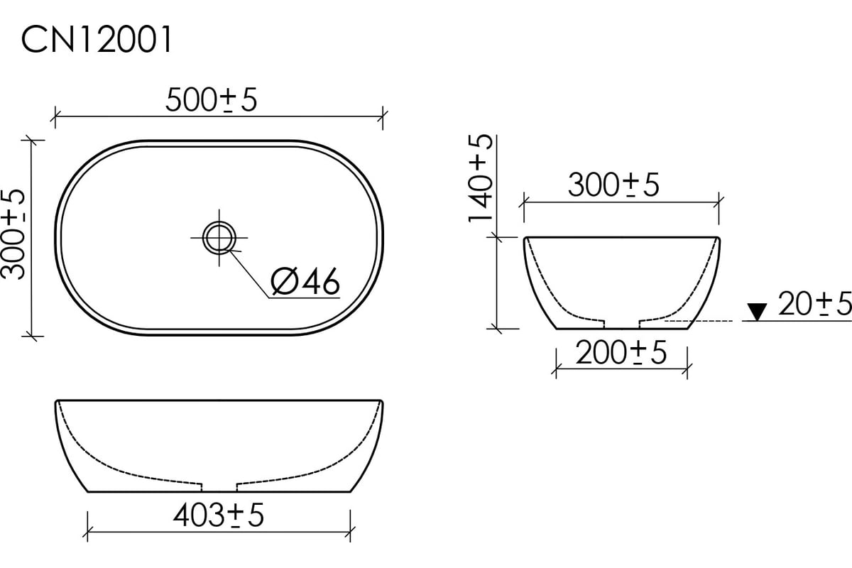 Овальная форма раковины размером 500x300x140 мм обеспечивает удобство использования и экономию пространства, что делает её идеальной для небольших ванных комнат.