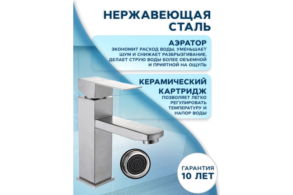 Раковина накладная со смесителем и выпуском прямоугольная Bauedge BAU Cerama 48x37, мрамор + смеситель Hotel Still, выпуск клик-клак хром YBD2559