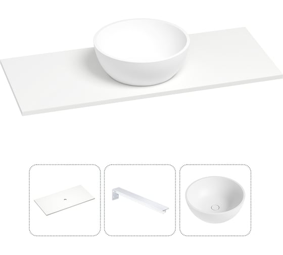 Раковина-столешница для ванной Wellsee La.lune в наборе 3 в 1: раковина из камня с подвесной столешницей 100 см в матовом белом цвете, с кронштейнами для подвесного монтажа 202003843