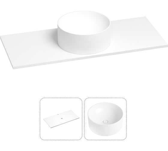 Раковина-столешница для ванной Wellsee Le.charme в наборе 2 в 1: раковина из камня с подвесной/мебельной столешницей 100 см в матовом белом цвете, без кронштейнов для подвесного монтажа 214701003