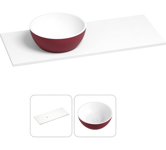 Раковина-столешница с чашей слева Wellsee La.lune в наборе 2 в 1: раковина из камня с подвесной/мебельной столешницей 100 см (цвет матовый пурпурно-красный/матовый белый) 214603021