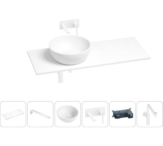 Раковина-столешница с чашей слева Wellsee La.lune в наборе 6 в 1: раковина, столешница 100 см, кронштейны, смеситель, сифон (цвет набора матовый белый) 202004494