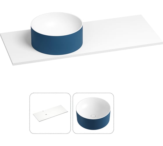 Раковина-столешница с чашей слева Wellsee Le.charme в наборе 2 в 1: раковина из камня с подвесной/мебельной столешницей 100 см (цвет матовый темно-синий/матовый белый) 214704004