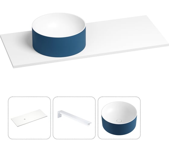 - 1 x раковина из искусственного камня RefStone, арт. 214704000 (размер 40.4*40.4 см, цвет внешней стороны матовый темно-синий, цвет внутренней стороны матовый белый)