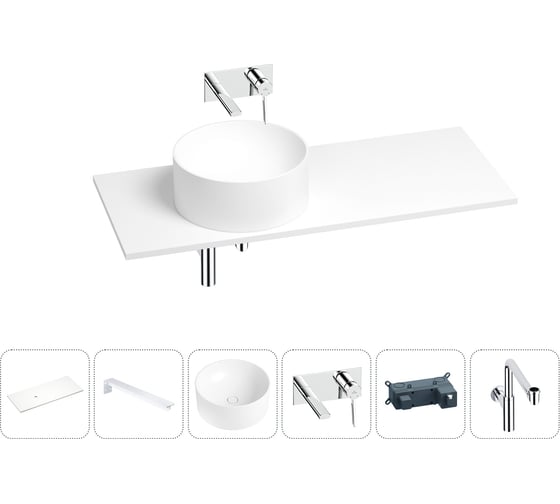 Раковина-столешница с чашей слева Wellsee Le.charme в наборе 6 в 1: раковина, столешница 120 см, кронштейны, смеситель, сифон (цвет набора хром) 202004600