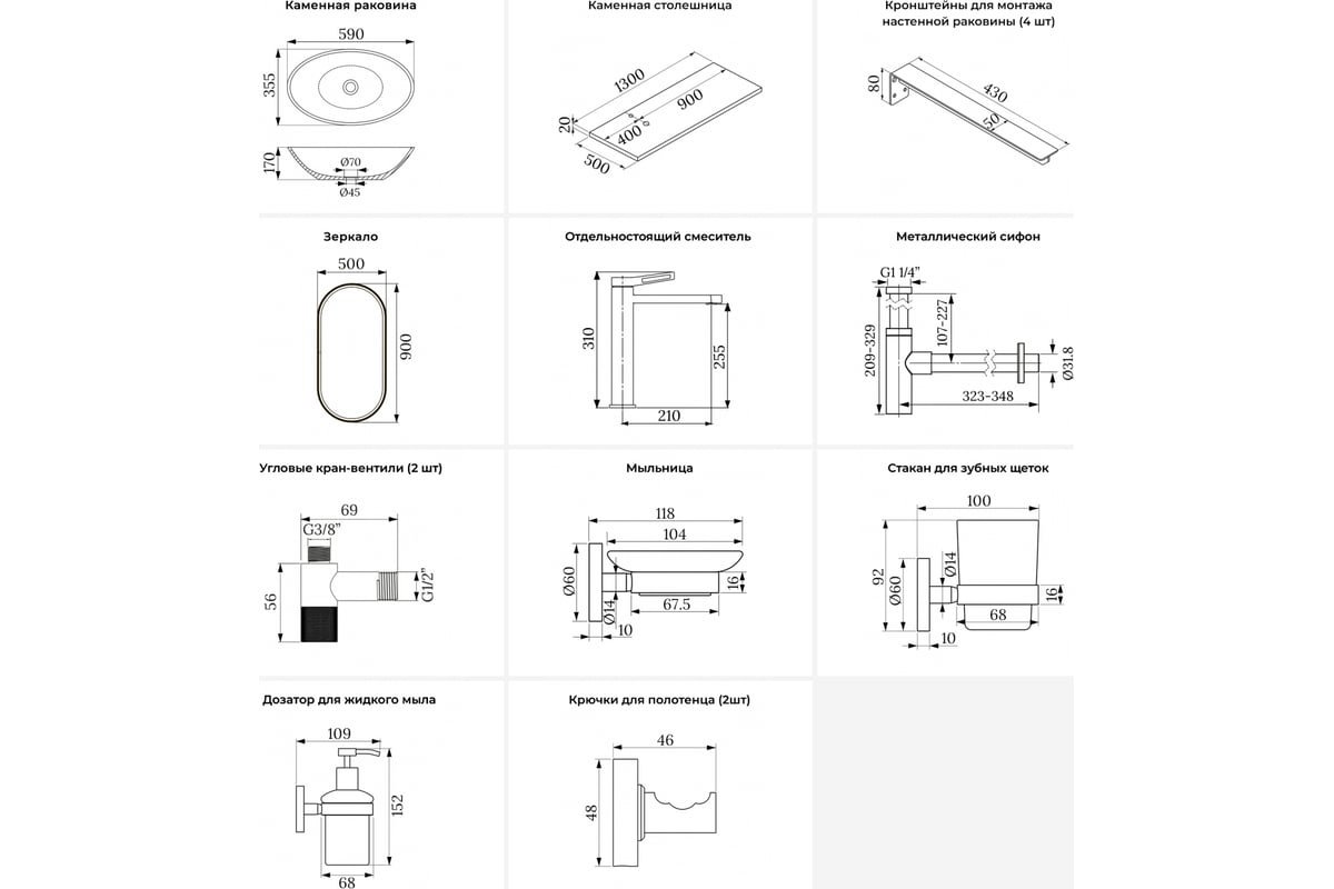 - 1 x донный клапан с накладкой из искусственного камня click-clack (цвет матовый белый)
