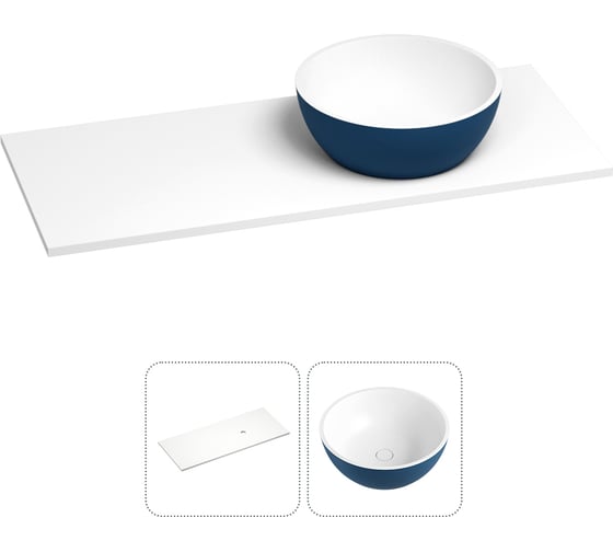 Раковина-столешница с чашей справа Wellsee La.lune в наборе 2 в 1: раковина из камня с подвесной/мебельной столешницей 130 см (цвет матовый темно-синий/матовый белый) 214604030