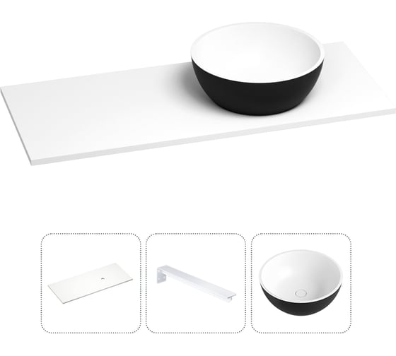 - 1 x раковина из искусственного камня RefStone, арт. 214602000 (размер 43*43 см, цвет внешней стороны матовый черный, цвет внутренней стороны матовый белый)