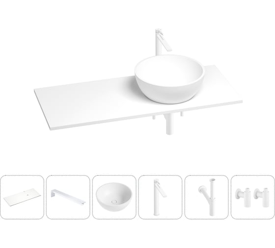 Раковина-столешница с чашей справа Wellsee La.lune в наборе 6 в 1: раковина, столешница 120 см, кронштейны, смеситель, сифон, вентили (цвет набора матовый белый) 202002907