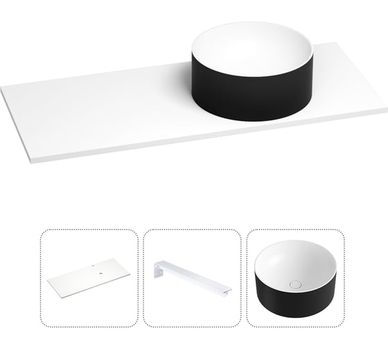 Раковина-столешница с чашей справа Wellsee Le.charme в наборе 3 в 1: раковина из камня с подвесной столешницей 100 см (цвет матовый черный/матовый белый), с кронштейнами 202005659
