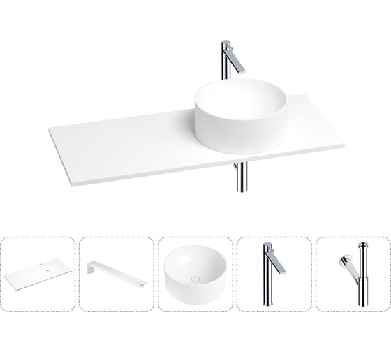 Раковина-столешница с чашей справа Wellsee Le.charme в наборе 5 в 1: раковина из камня со столешницей 120 см, кронштейны для подвесного монтажа, смеситель и сифон (хром) 202002603